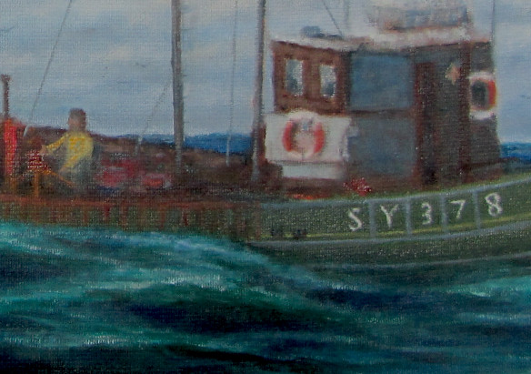 Painting based on this picture of the Wanderer II, a Scottish scallop dredger.