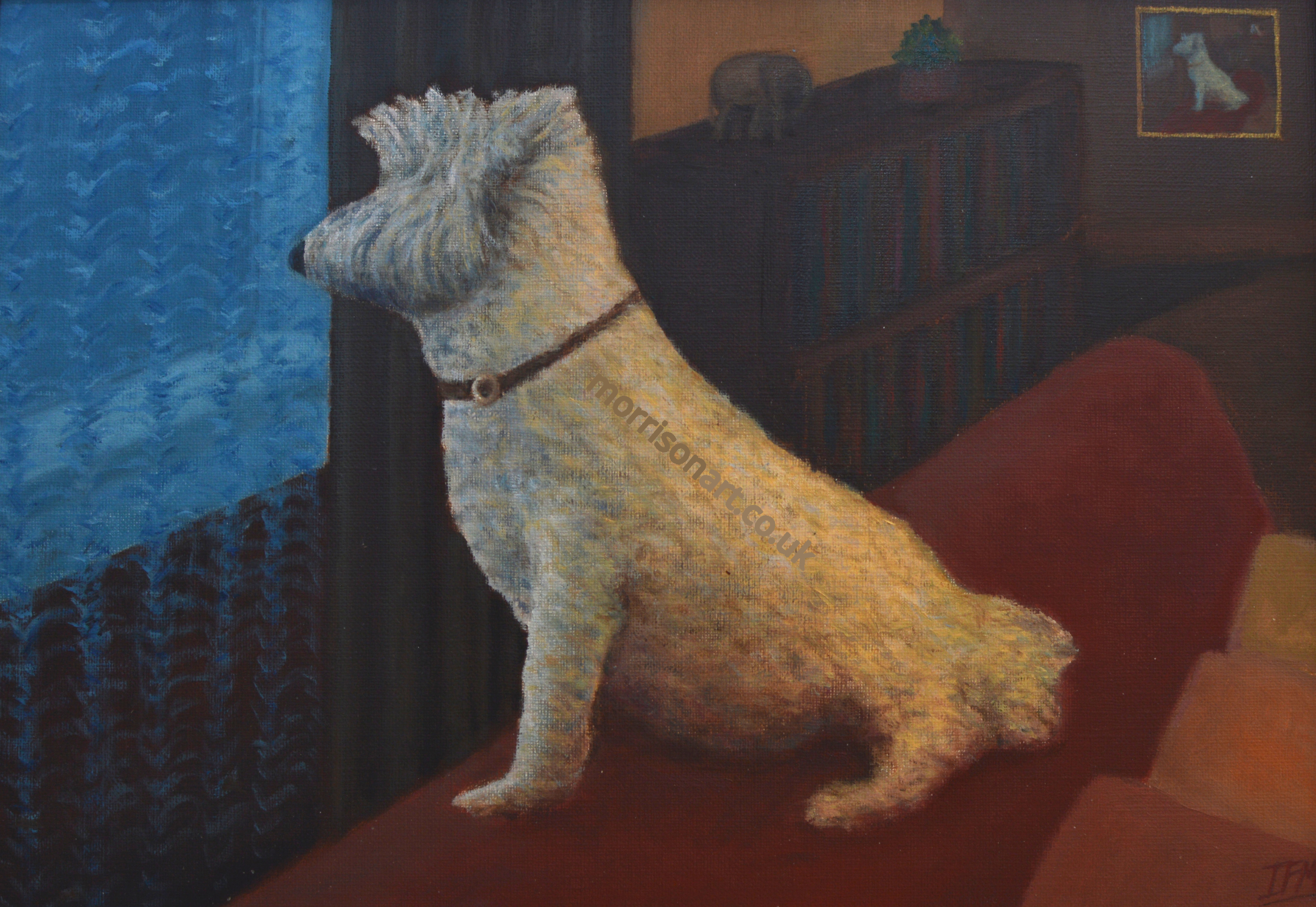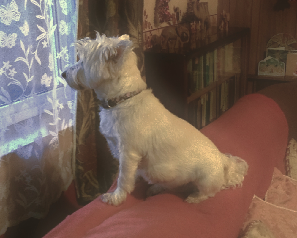 ← Reference photo. This is the dogs favourite pose - sitting on top of the couch, on guard.