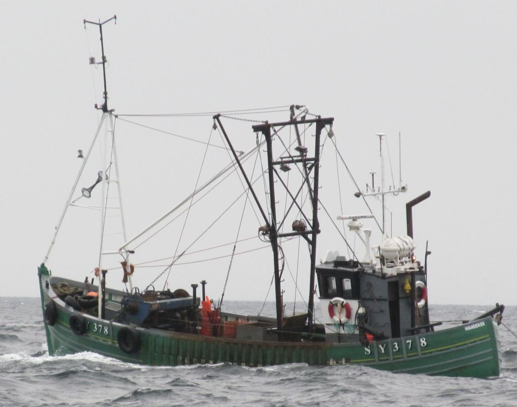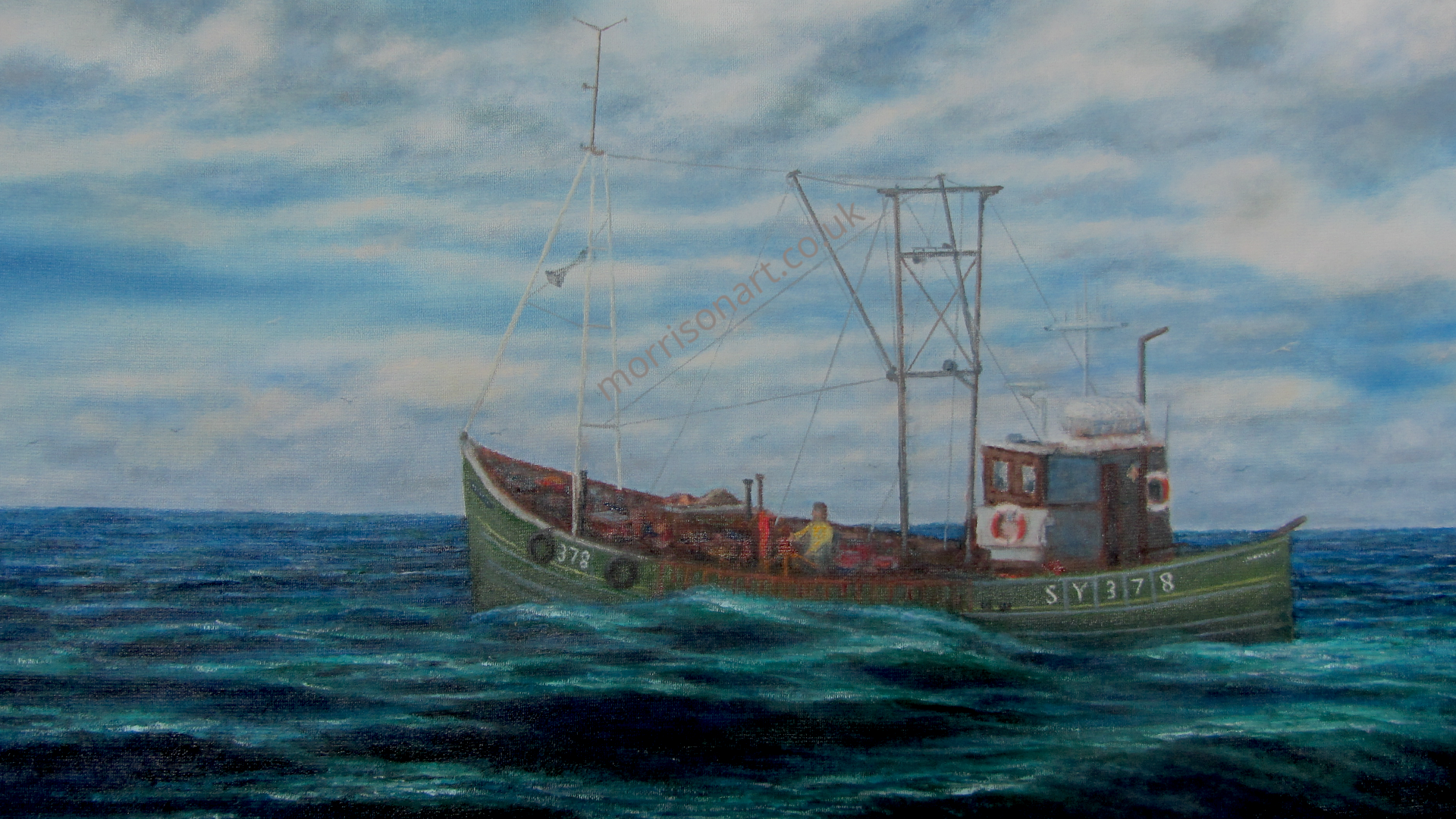 Painting based on this picture of the Wanderer II, a Scottish scallop dredger.